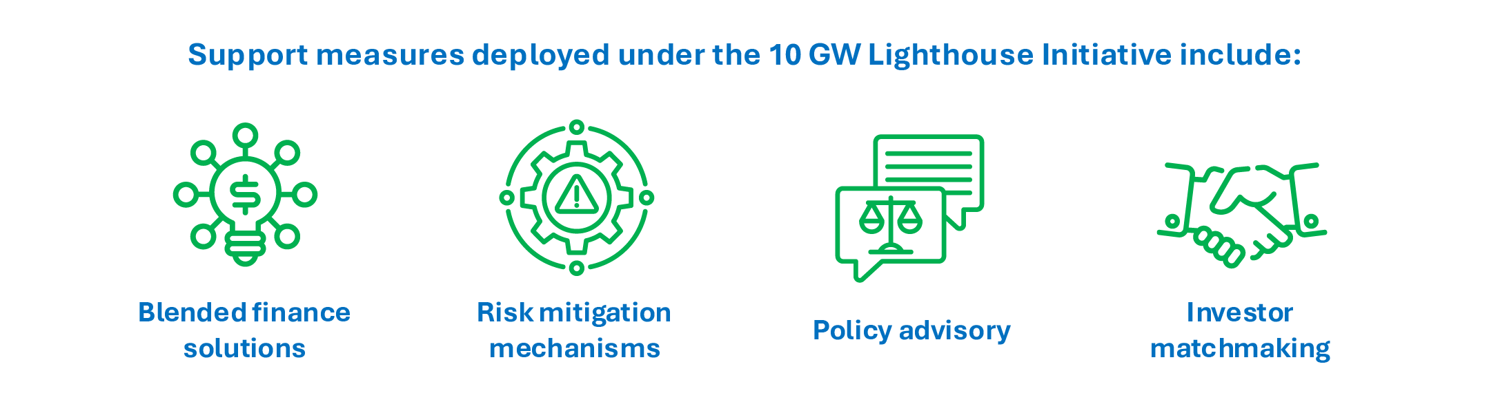The Lighthouse Initiative is focused on aligning financing institutions, unlocking project pipelines, strengthening due diligence, reducing costs through concessional instruments, and attracting private sector participation. This integrated, country-specific approach ensures that hydrogen strategies reflect local strengths and priorities.