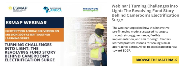From Fossil Fuel Reliance to Renewable Ambition: How Tunisia and Burkina Faso Are Shaping Africa’s Clean Energy FutureIn 2025, ESMAP' SRMI launched with the African Development Bank (AfDB), the Morocco Renewable Energy Agency (Masen), GIZ GET.transform, the Agence Française de Développement (AFD), and the International Renewable Energy Agency (IRENA) the SRMI-ESMAP Renewables Academy. Bringing together 72 energy sector leaders from 17 Francophone African countries, the Academy where ministry officials, regulators, and utility staff can learn how to prepare bankable renewable energy projects, negotiate fair contracts, and advocate for policy reform. The Academy also enables peer exchange, problem solving across and builds a community of practice – exemplifying the World Bank’s new approach to global knowledge sharing.