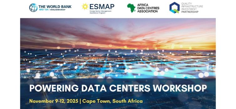 On November 10-13, 2025, ESMAP jointly with the Digital & AI Vicepresidency, Quality Investment Partnership (QII), the International Finance Corporation (IFC), Africa Data Centres Association (ADCA) organized a Powering Data Centers Workshop in Cape Town. The workshop convened more than 120 participants, including digital and energy government clients from Brazil, Cote d'Ivoire, DRC, Ethiopia, Gabon, Kenya, Malawi, Namibia, Nigeria, Senegal, SACREEE, SAPP, South Africa, Tanzania, Uganda, Uzbekistan, and Zambia, along with more than 40 data center investors and industry experts from the private sector. Presentations from energy and digital sector clients from Gabon, Kenya, Nigeria, Senegal and Uzbekistan as well as break out discussions offered an environment for open knowledge sharing. The workshop demonstrated that data centers represent an opportunity to serve as a catalyst for modernization and decarbonization of power systems; they can anchor new privately funded renewable generation, contribute to needed grid upgrades, and support the financial sustainability of utilities through stable demand. To unlock these benefits, energy sector clients can leverage solutions including improved grid planning, regulations to unlock private generation, grid flexibility and energy efficiency measures, and cross government coordination.